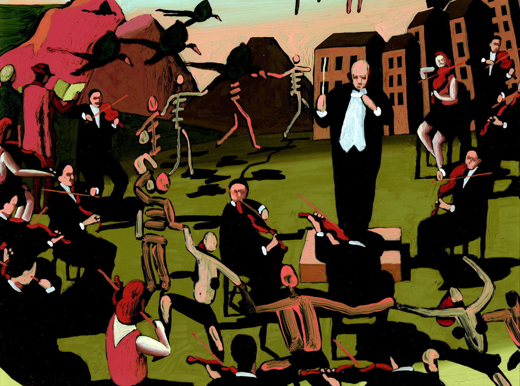 Szene aus der Oper „La damnation de Faust“ von Hector Berlioz, dargestellt in Form eines animierten Bildes: Zwei Reiter erscheinen, abwechselnd mit anderen Bildern, im Rhythmus ihrer galoppierenden Pferde.