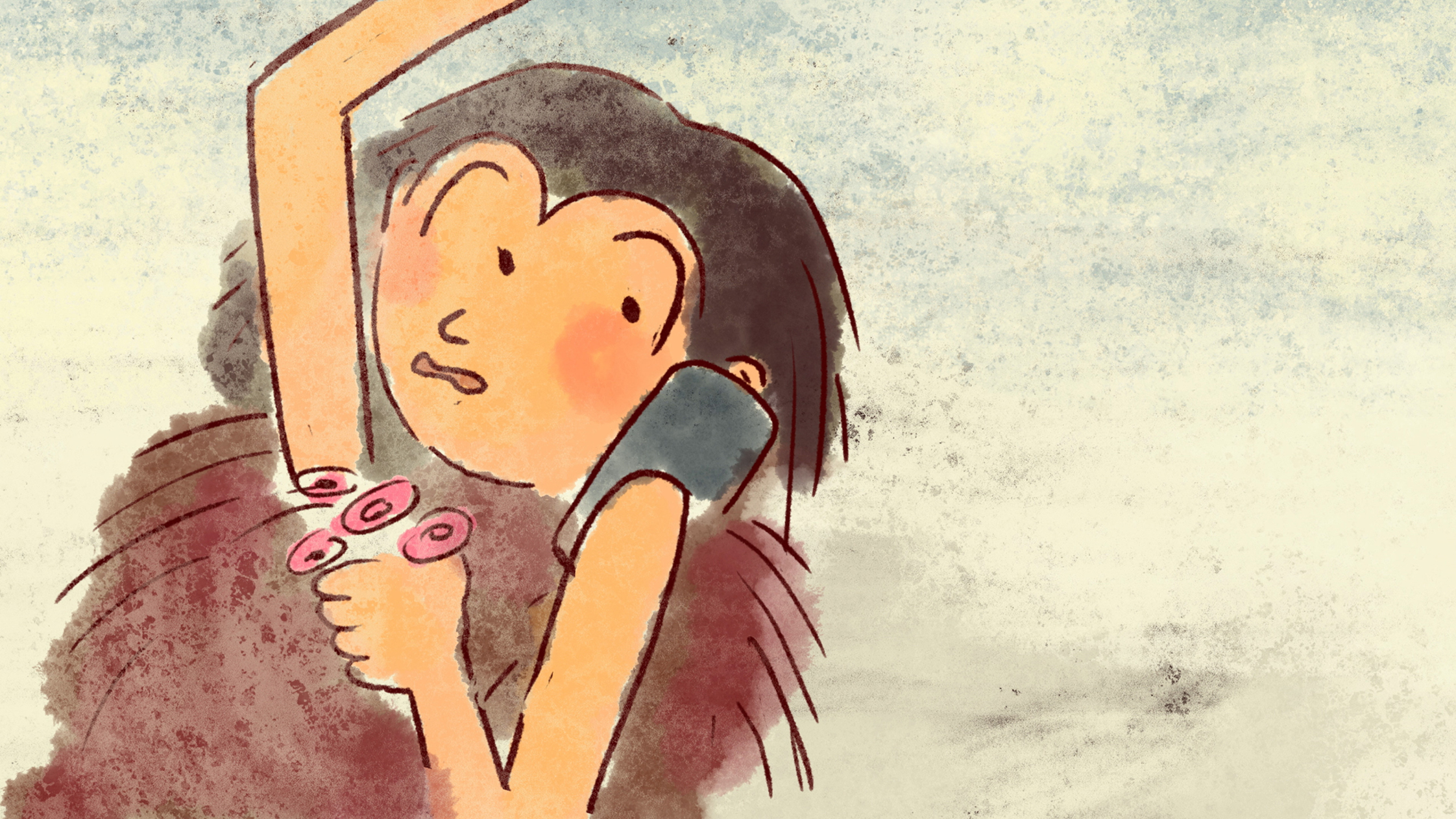 Noch während das kleine Steinzeitmädchen vor dem Untier davonläuft, klingelt ihr Handy. Dann ist auch noch ihre Farbe weg. Was kommt als Nächstes? Ein kurzer Film über die Zauberkraft des Animationsfilms.